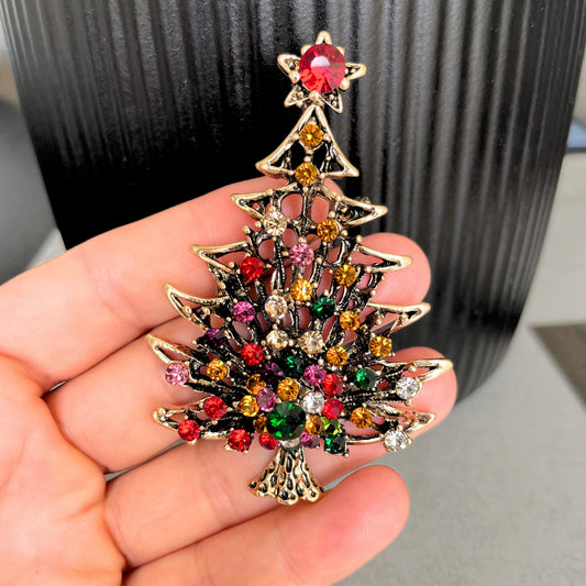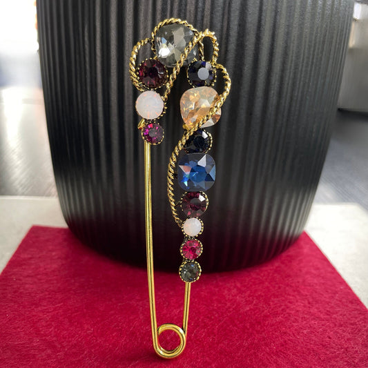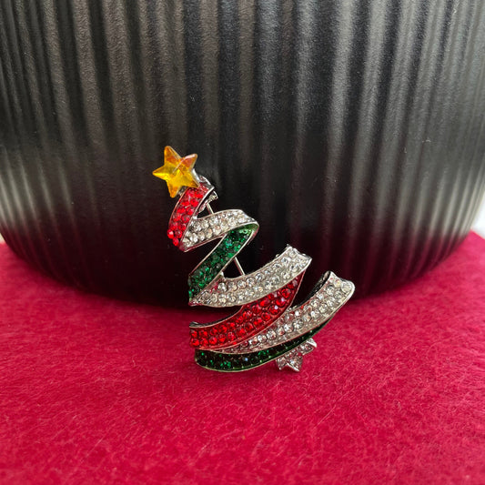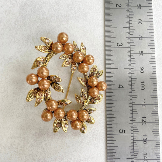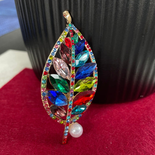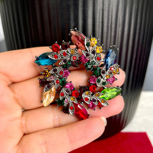 Olive tree branch wreath colourful crystal pin brooch pendant