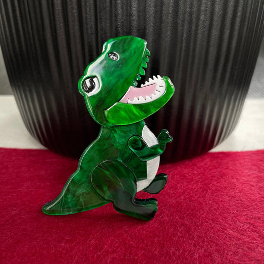 Art Deco red T-rex dinosaur acrylic pin brooch