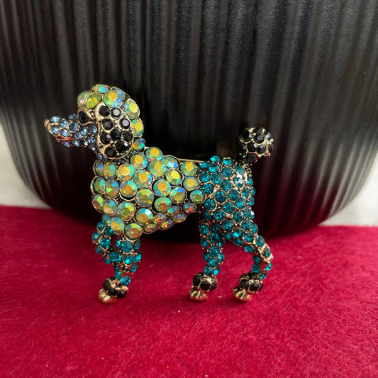 Charming blue poodle dog gold pin brooch