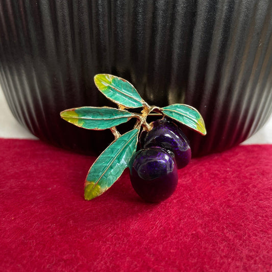 Retro purple olives green leaf gold pin brooch