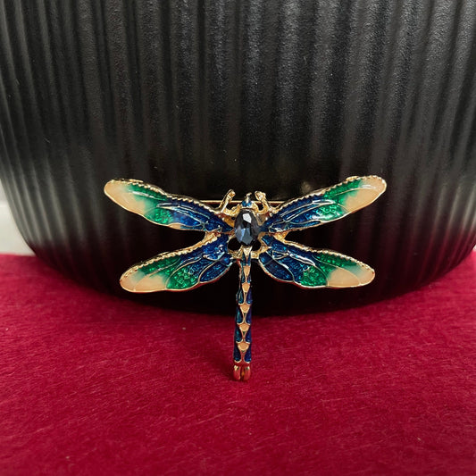 Retro green &blue enamel dragonfly gold pin brooch