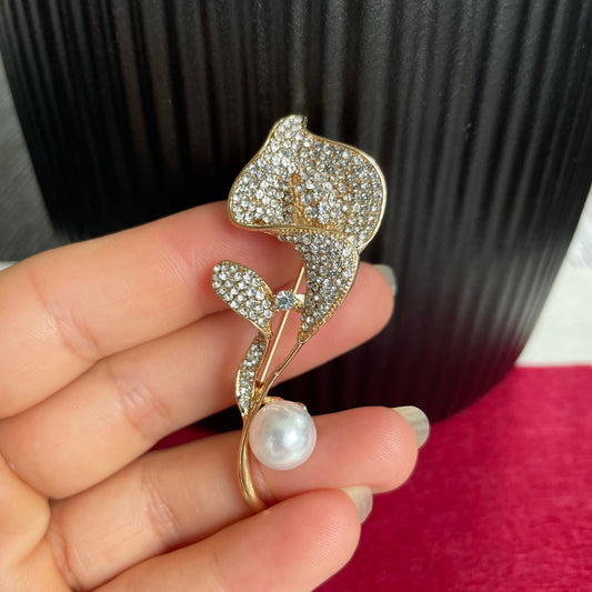 Delicate Calla Lily flower pearl gold pin brooch