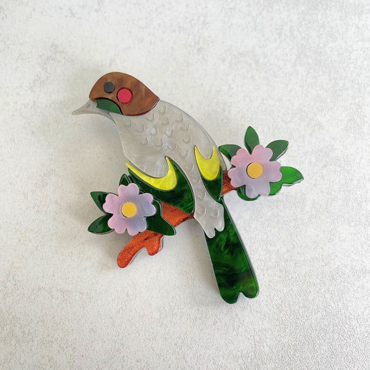 Art Deco cherry blossom bird acrylic pin brooch