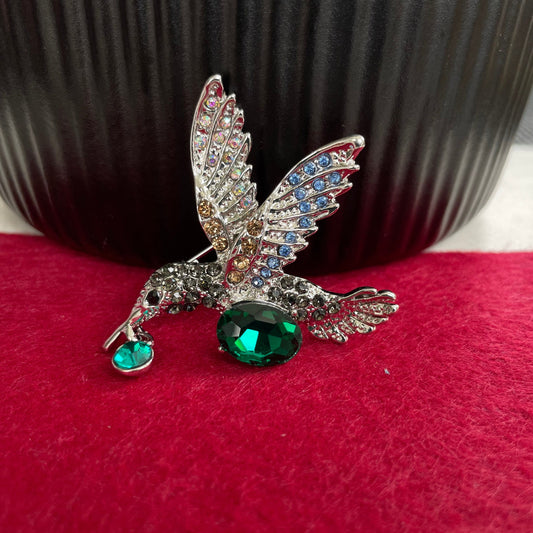 Green emerald Hummingbird silver pin brooch