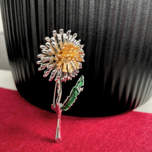 Dandelion flower silver pin brooch