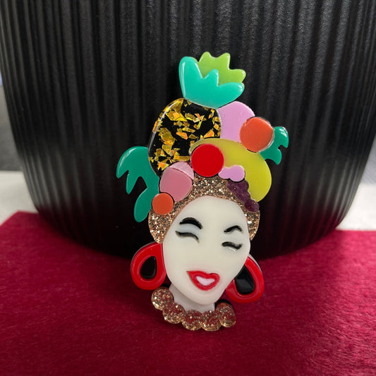 Art Deco African lady multicolour acrylic pin brooch
