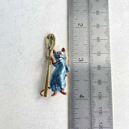 Charming little chef mouse gold pin brooch