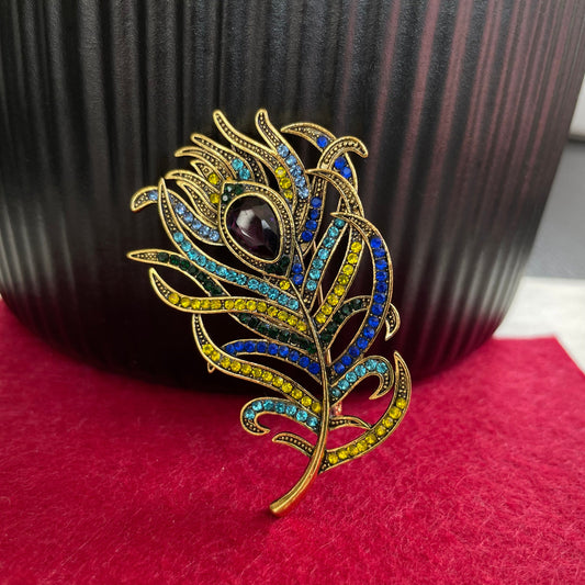Statement multicolour feather gold pin brooch
