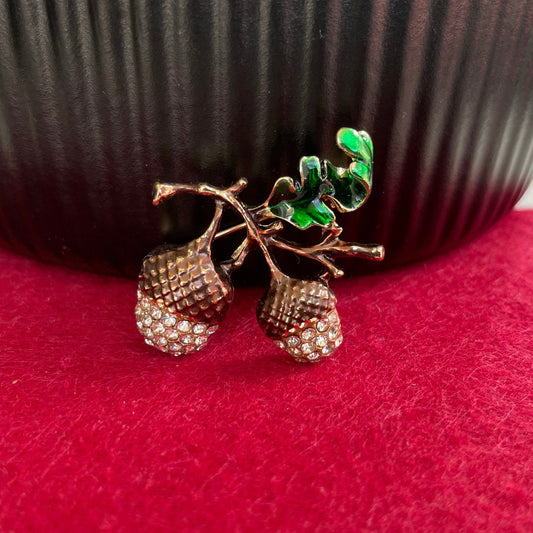 Dainty brown enamel acorn brooch