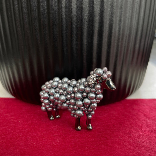 Cute Sheep pearls gold pin brooch