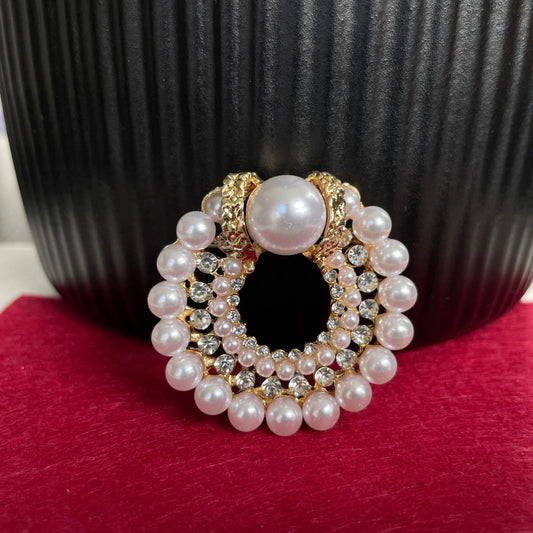 Delicate Vintage style pearl flower circle gold pin brooch