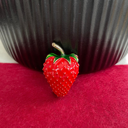 Retro red enamel strawberry gold pin brooch
