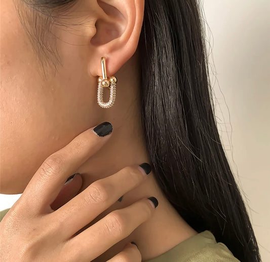 Chain Tassel Geometric Earrings