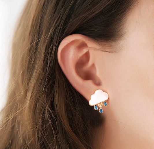 White Cloud Raindrops Stud Earrings