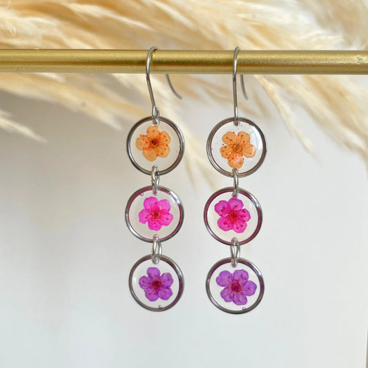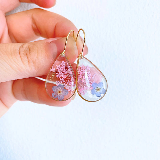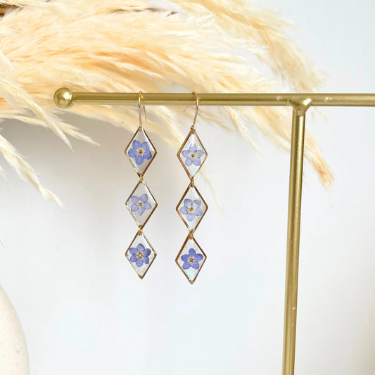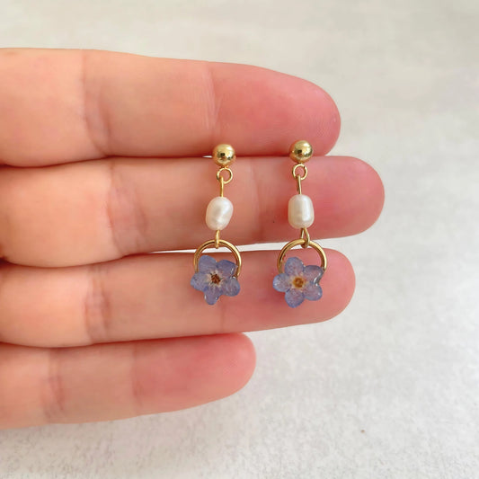 Daisy ForgetMeNot Flowers Dangle Earrings