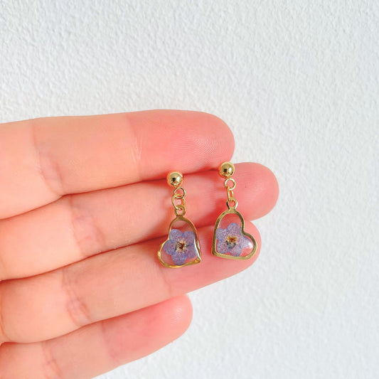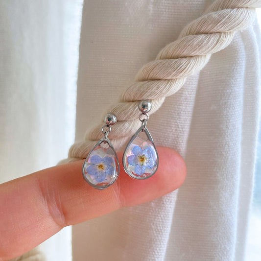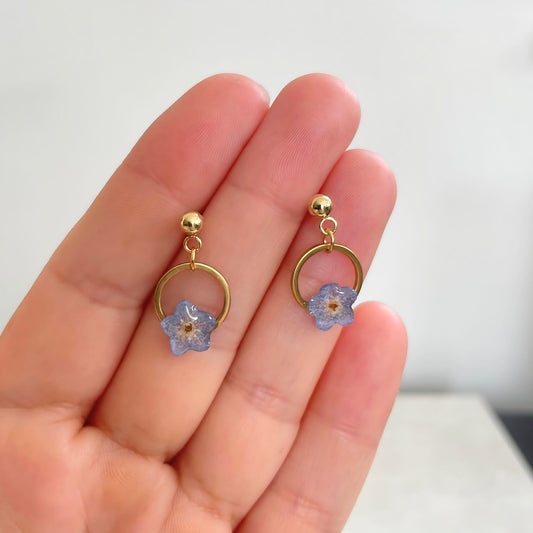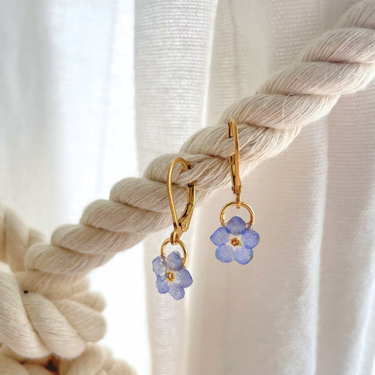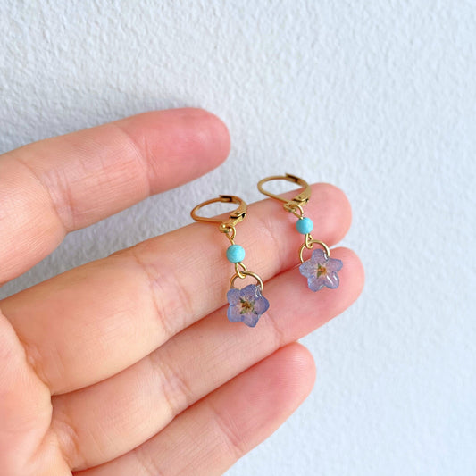Tiny Forget Me Not Flower Charm Huggie Earrings