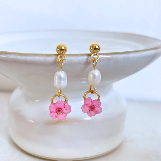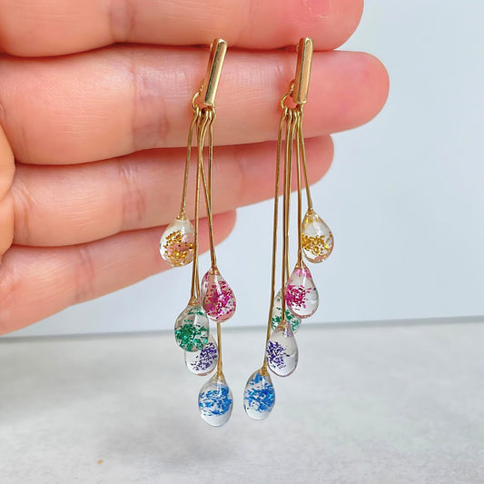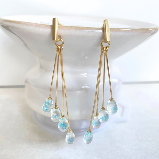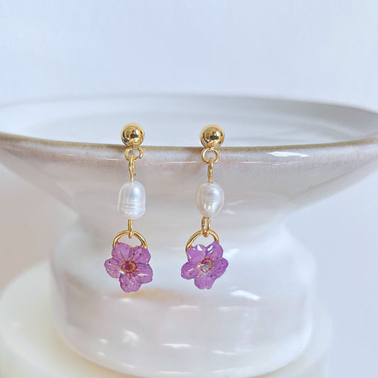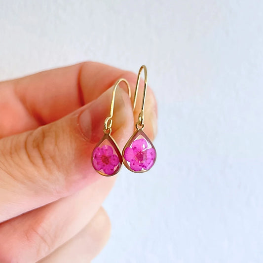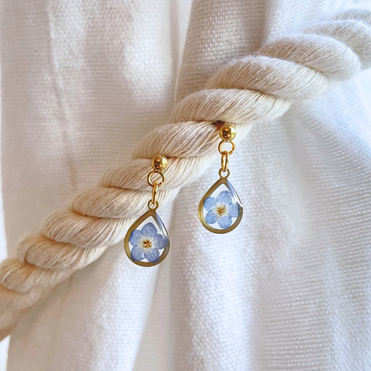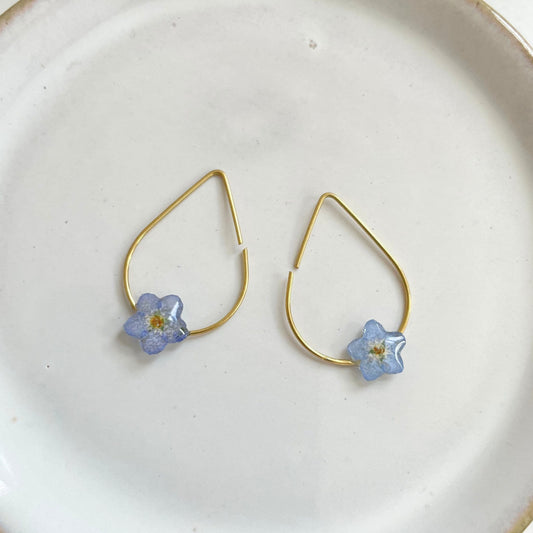 Forget Me Not Flower Charm Teardrop Hoop Earrings