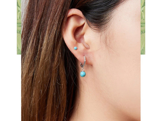 Tiny Turquoise Charm Hoop Earrings