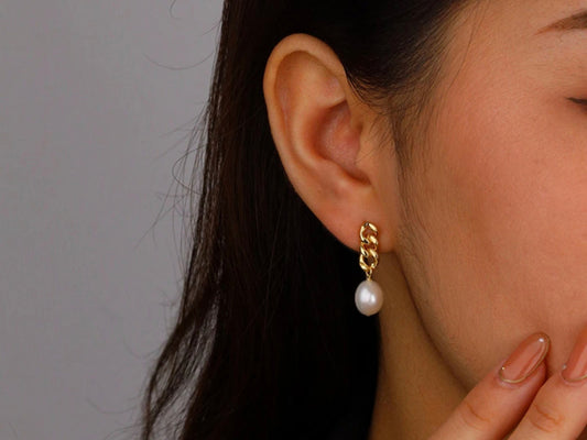 Chain Pearl Drop Earrings