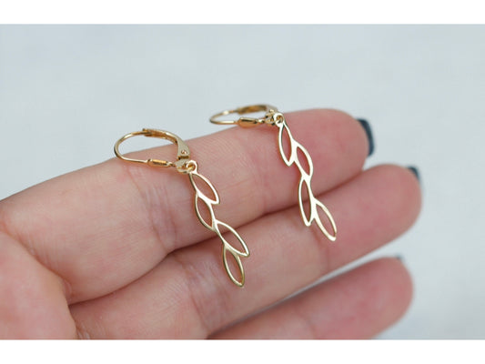 Vine Leaf Charm Drop Hoop Earrings