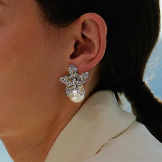 Large Flower Pearl Drop Stud Earrings