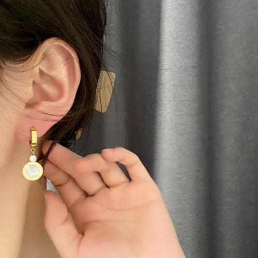 Abalone Shell Charm Hoop Earrings
