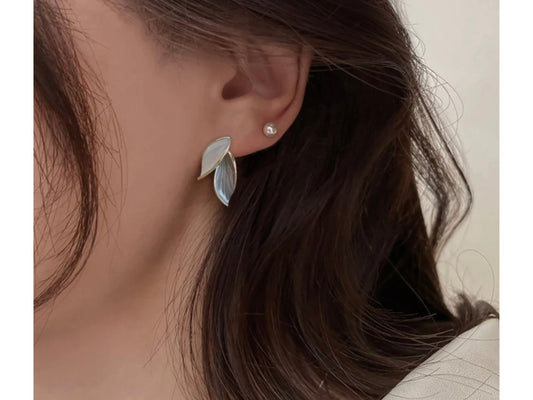Blue Leaf Stud Earrings