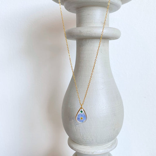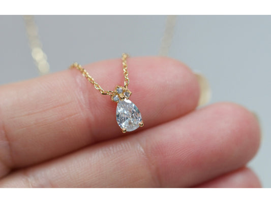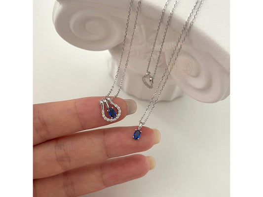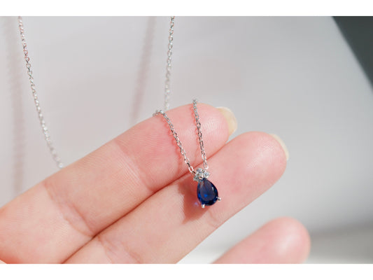 Tiny Blue Sapphire Teardrop Charm Necklace