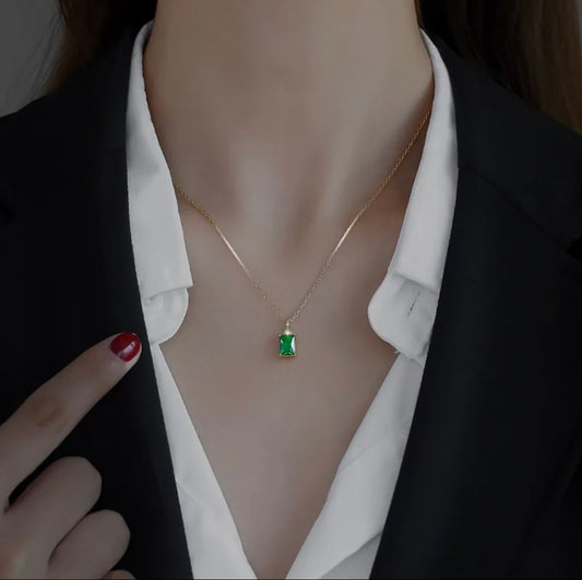 Emerald Baguette Charm Necklace
