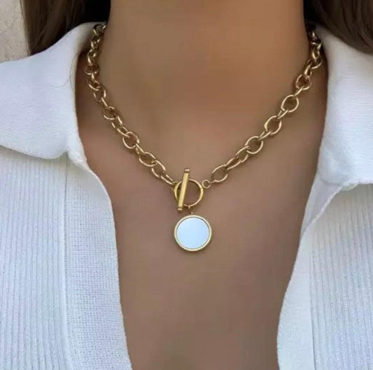 Chunky Gold Round Pendant Necklace